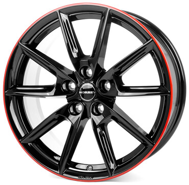 BORBET LX18 BLACK GLOSSY RIM RED, keskireikä 72.6, jako 5×114.3.